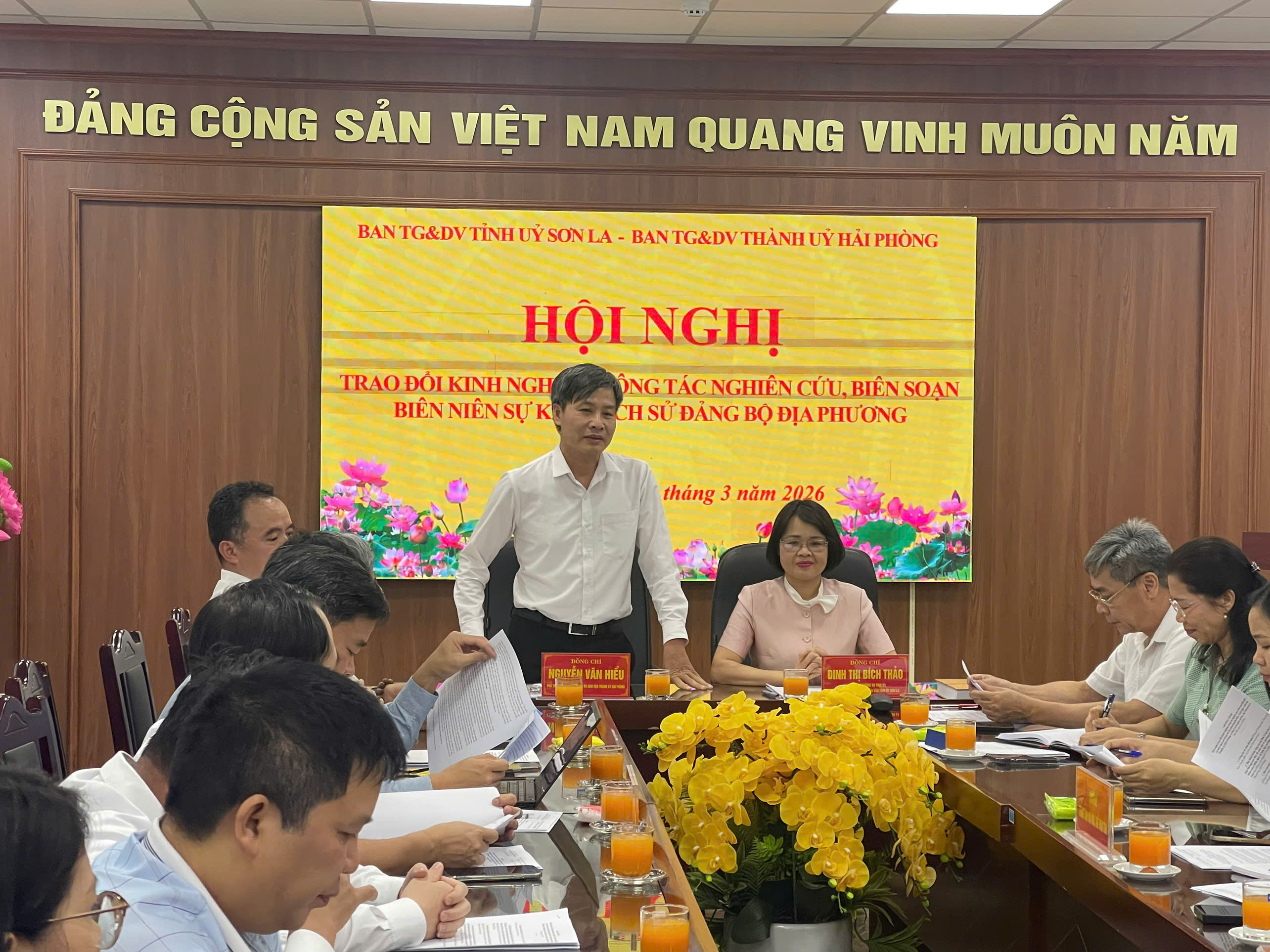 trao đổi kinh nghiệm nghiên cứu, biên soạn lịch sử Đảng bộ địa phương. Chủ trì hội nghị gồm