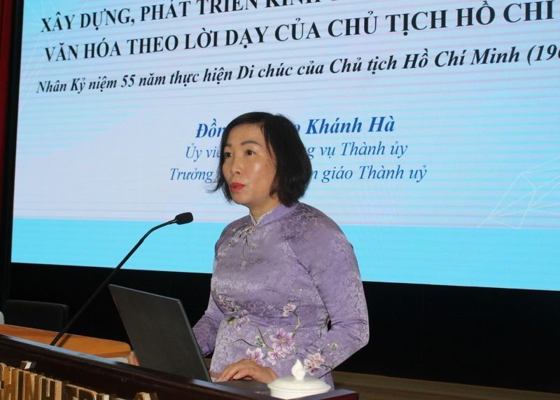 chí Đào Khánh Hà, Trưởng Ban Tuyên giáo Thành ủy phát biểu đề dẫn hội thảo.