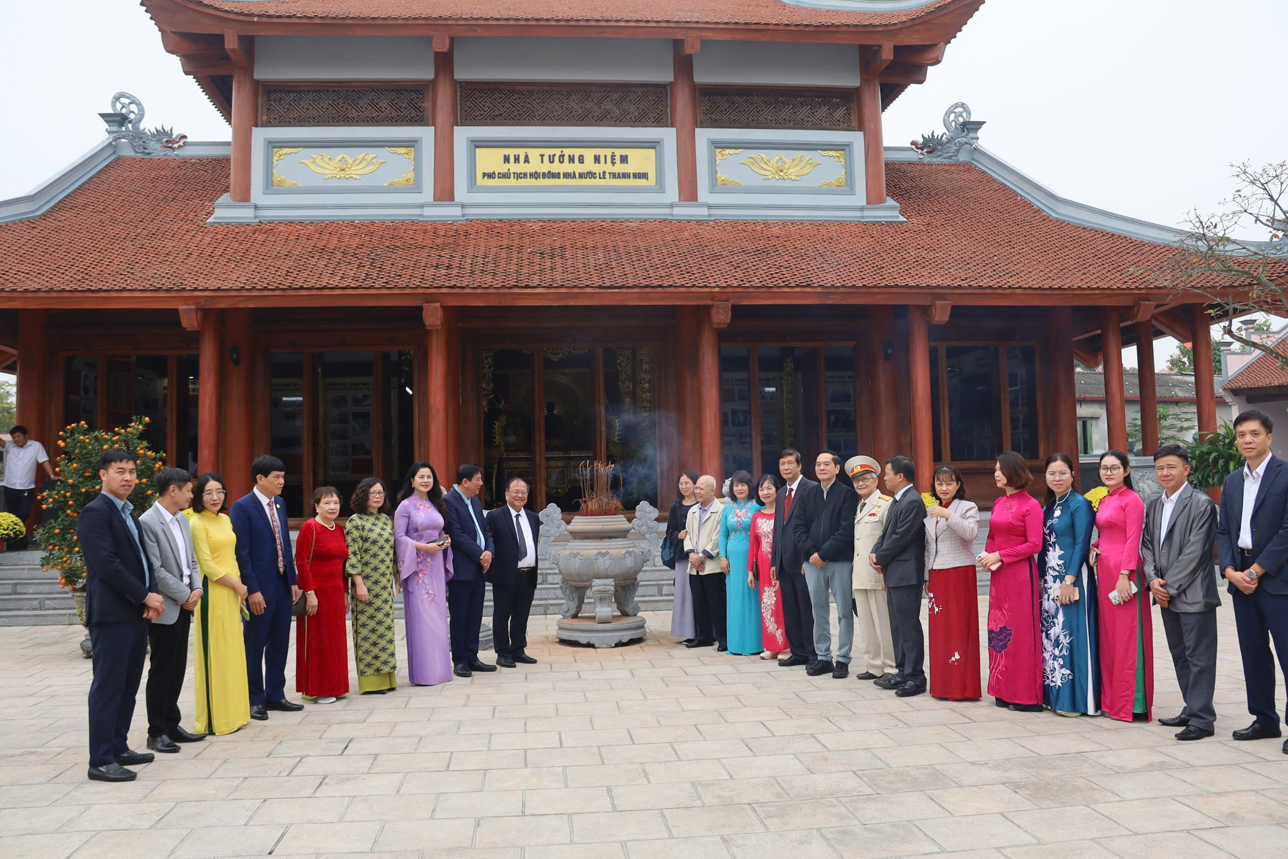 Các đại biểu chụp ảnh lưu niệm tại Nhà