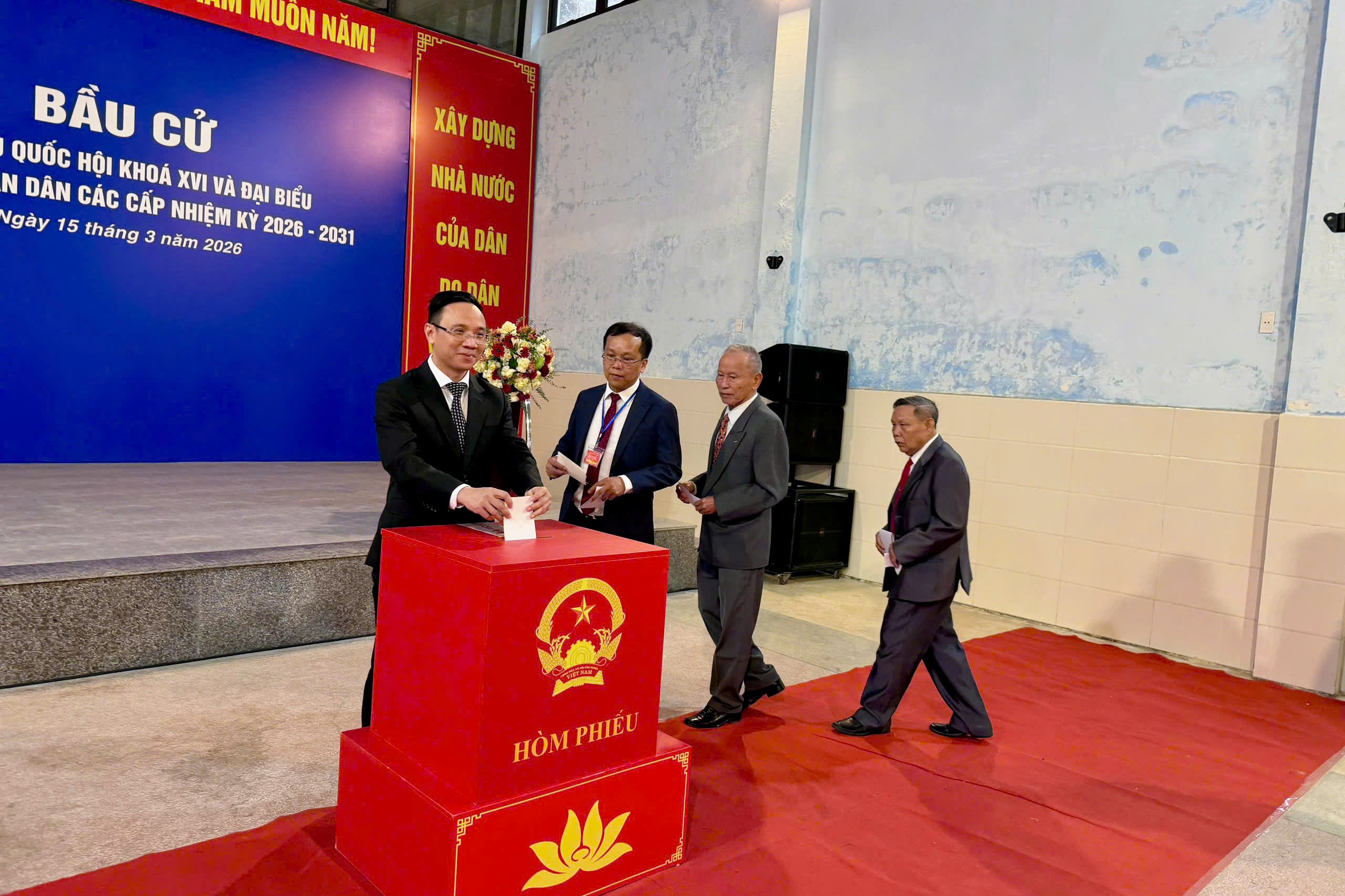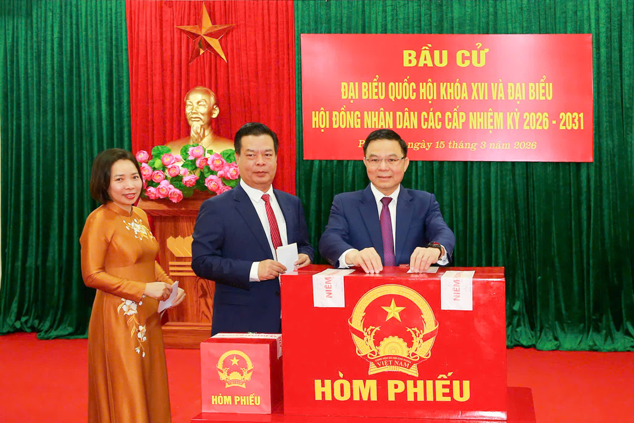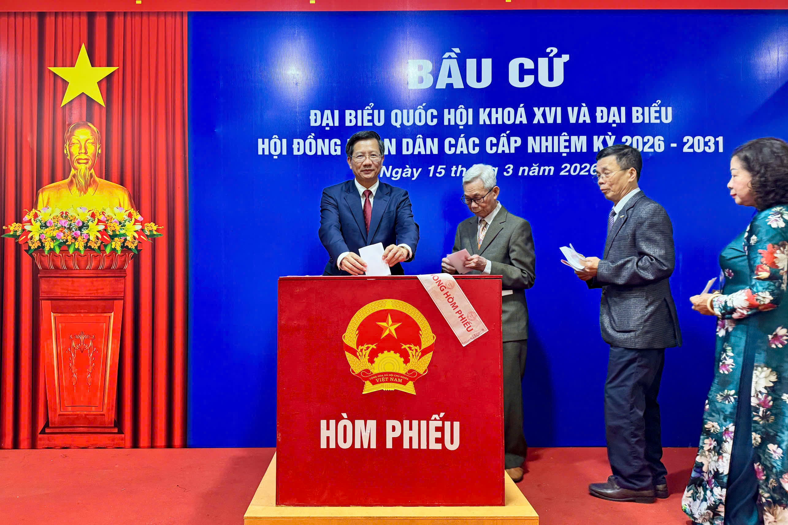 Đồng chí Lê Mạnh Hùng, Ủy viên Trung ương Đảng, Quyền Bộ trưởng Bộ Công Thương bỏ phiếu bầu đại biểu Quốc hội khóa XVI và HĐND các cấp nhiệm kỳ 2026–2031.
